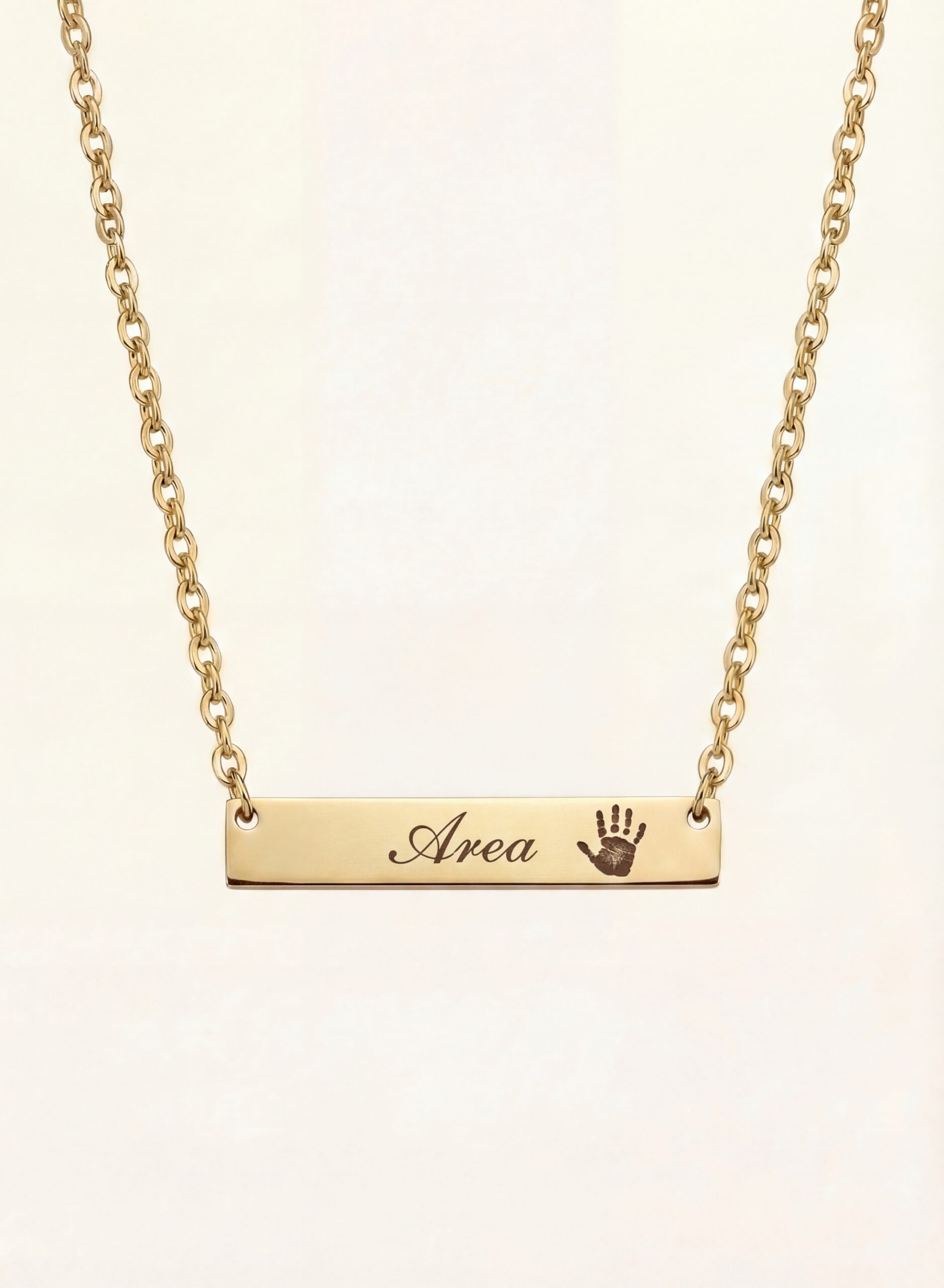 Express your love and sentiment with this Custom Engraved Bar Pendant Necklace, beautifully designed to feature a baby’s handprint or footprint. Crafted from durable stainless steel and plated in your choice of finish, this sleek rectangular bar pendant can be personalized with a name, date, or short message—creating a timeless keepsake. Perfect as a heartfelt gift for new parents or a meaningful everyday piece to keep your little one close.