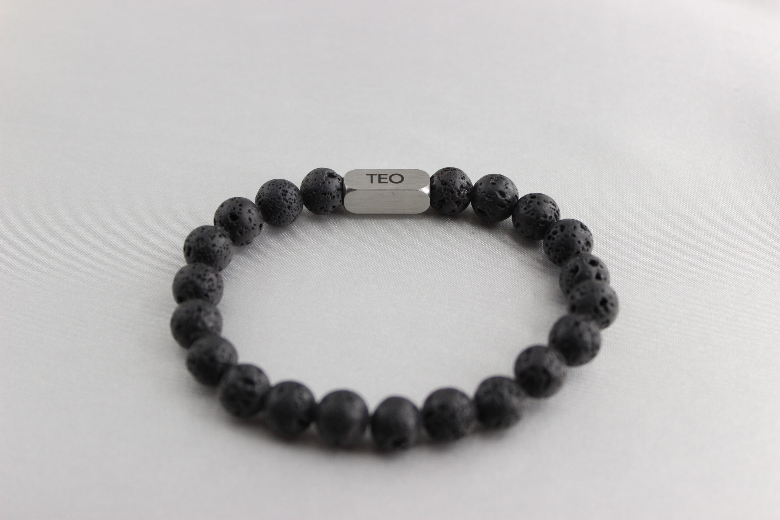 - Bead Size: 8mm natural lava stone beads (matte black, porous texture)